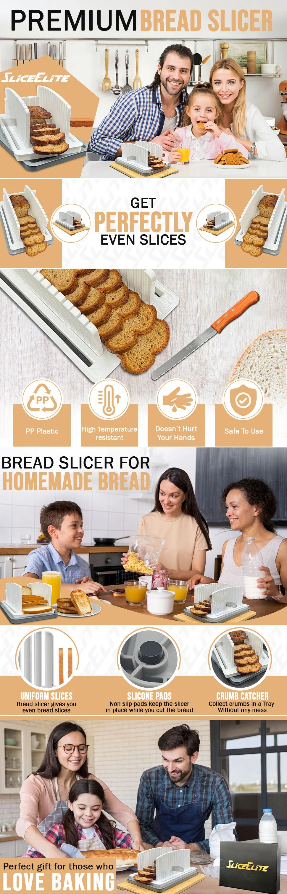 An excellent gift for bread enthusiasts, this bread slicing guide is perfect for bakers and bread lovers alike. With its adjustable slicing options, crumb tray, and premium serrated bread knife, itโs an essential addition to any collection of homemade bread accessories.