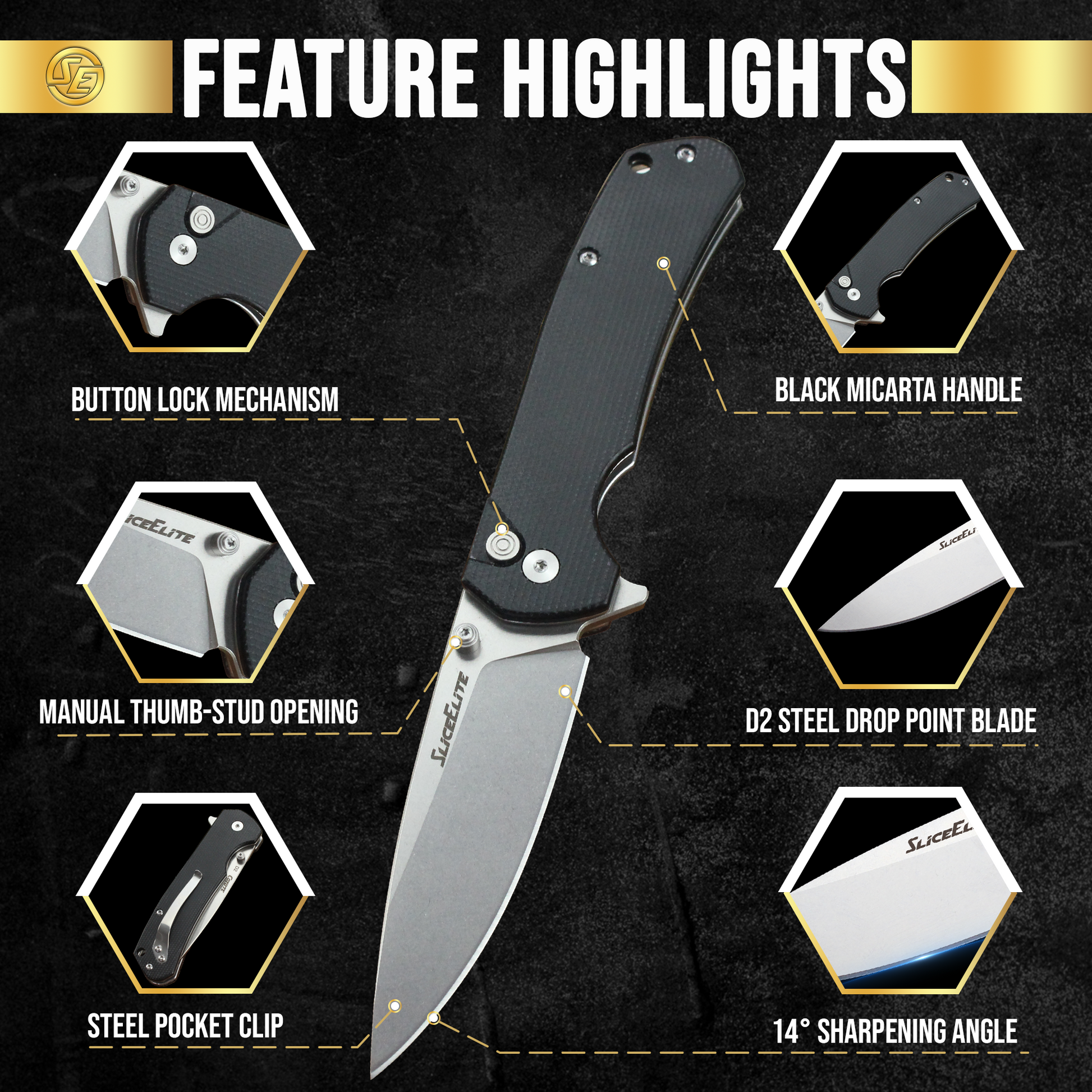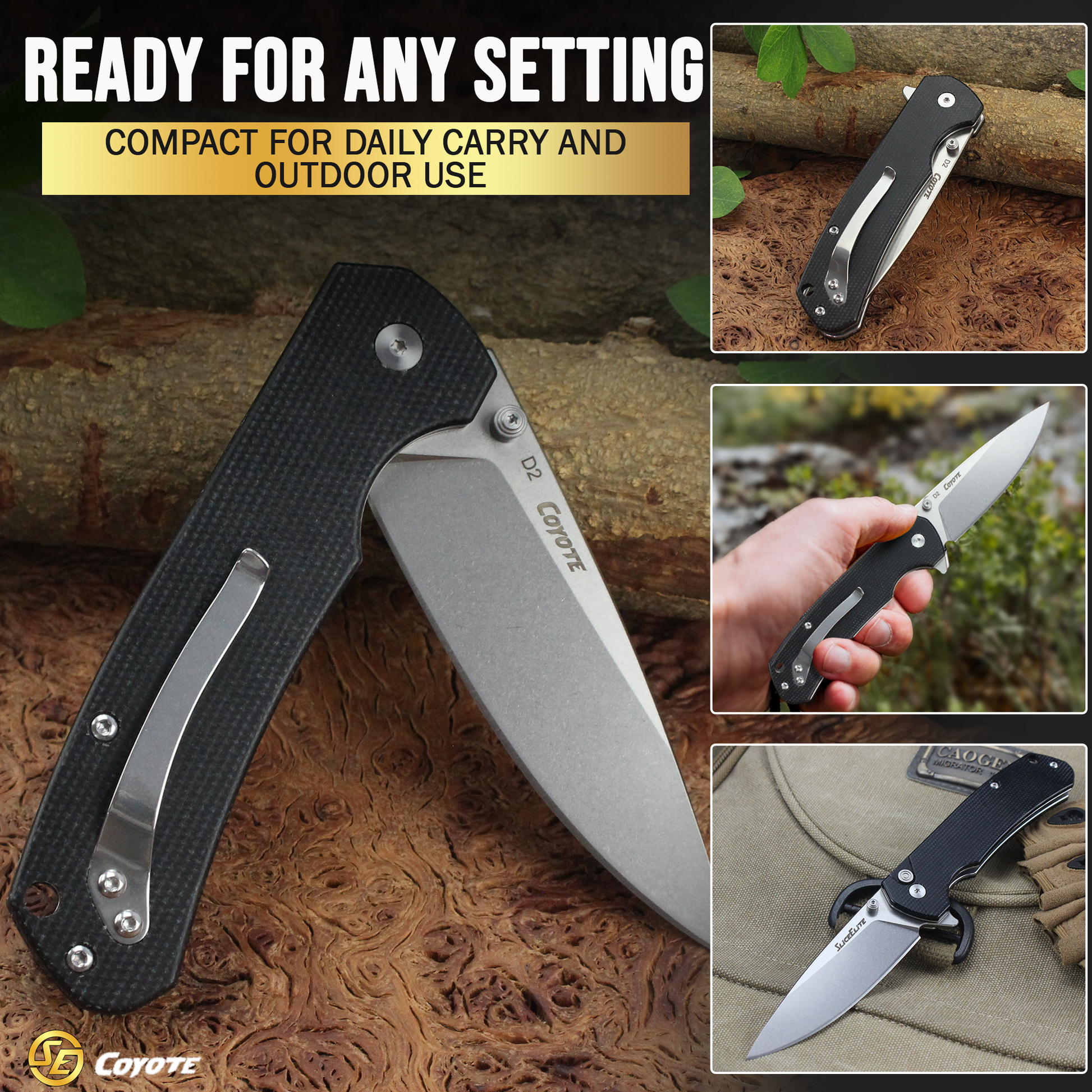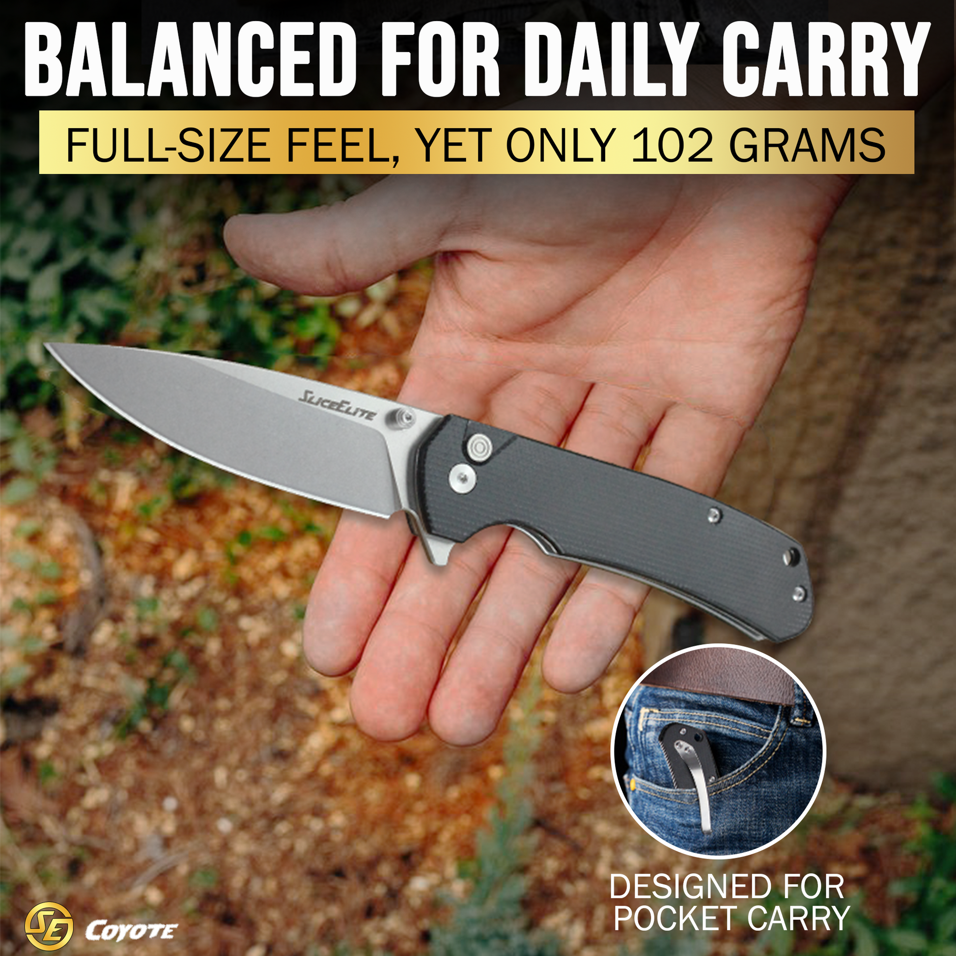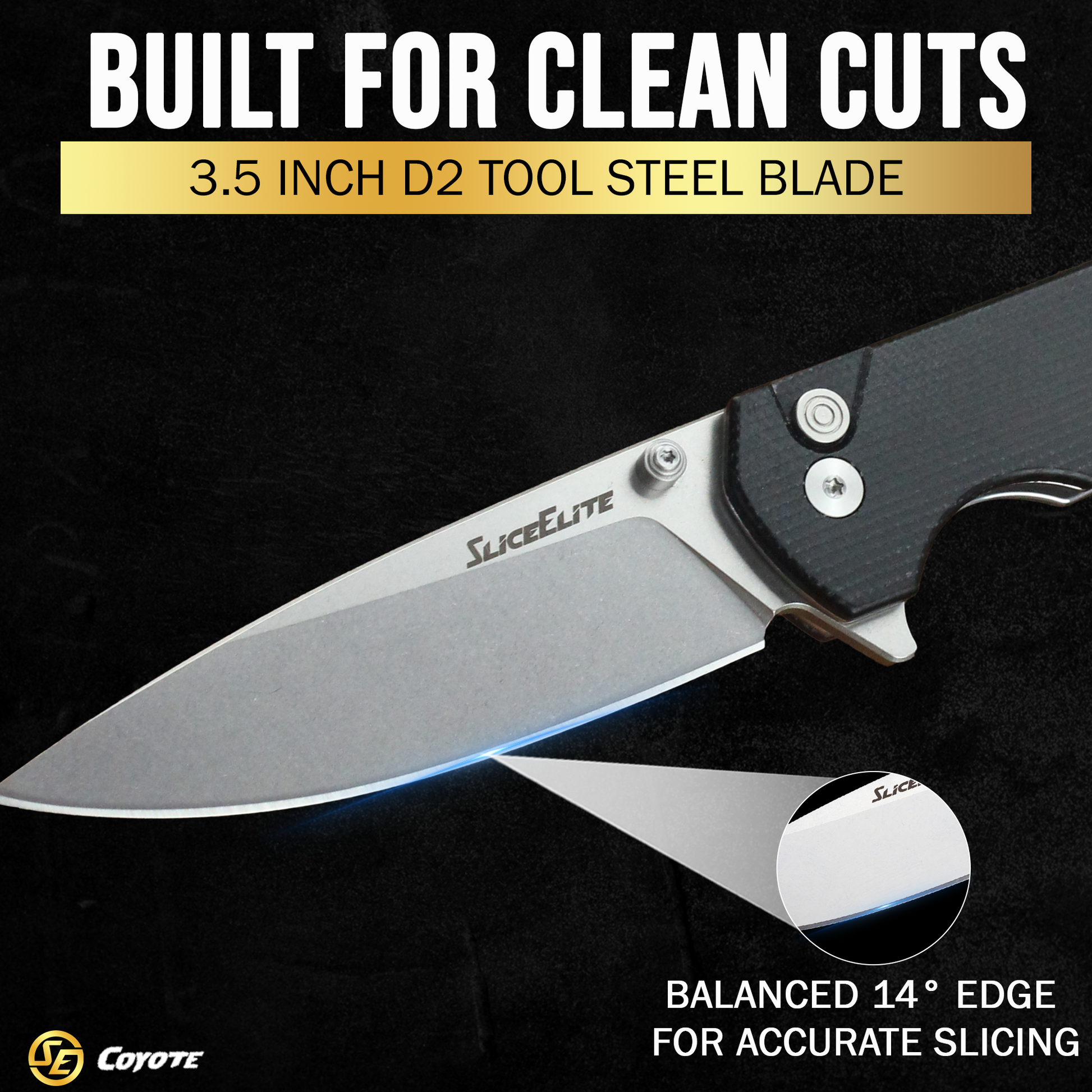 SliceElite 3.5 Inch Coyote EDC Knife D2 Steel Micarta Handle