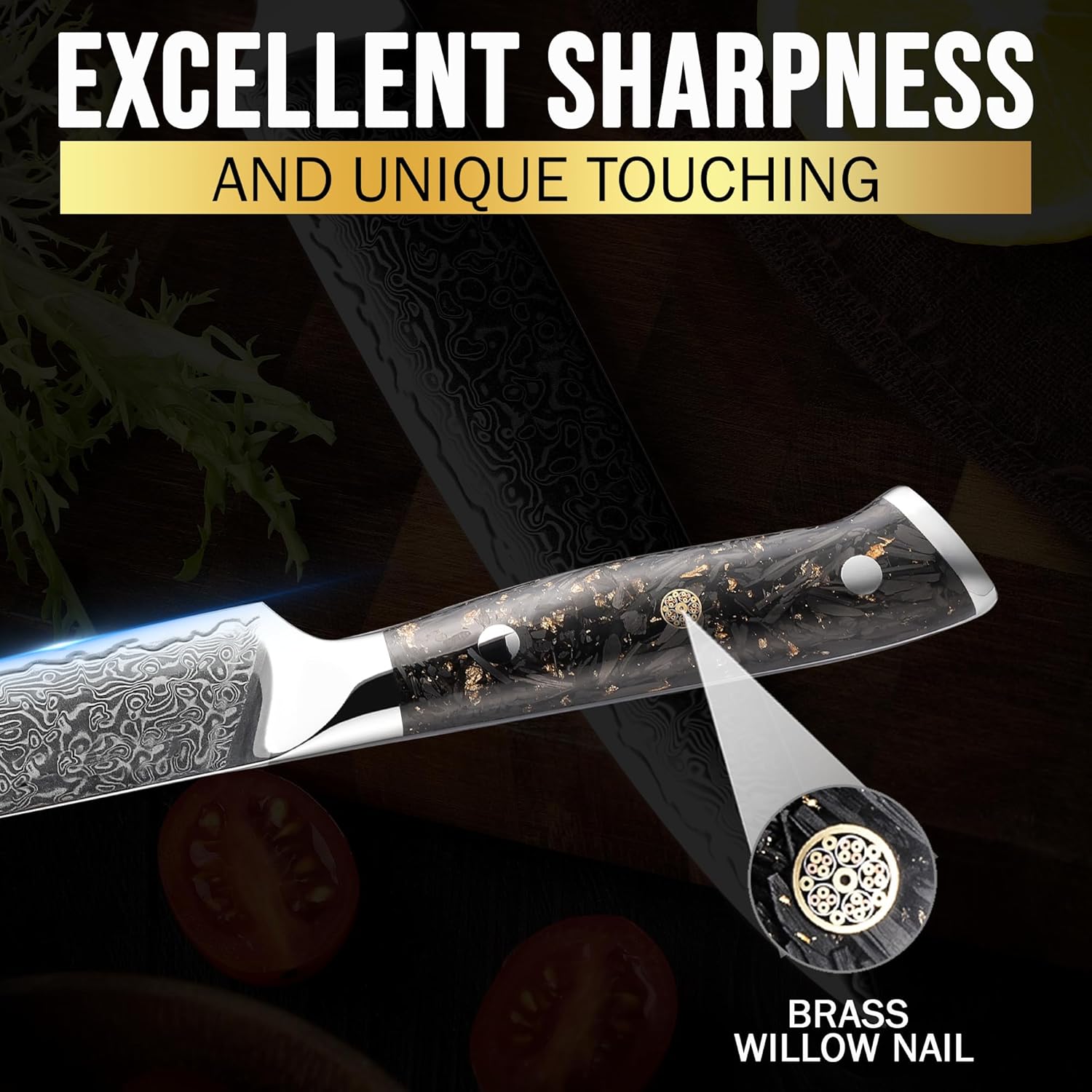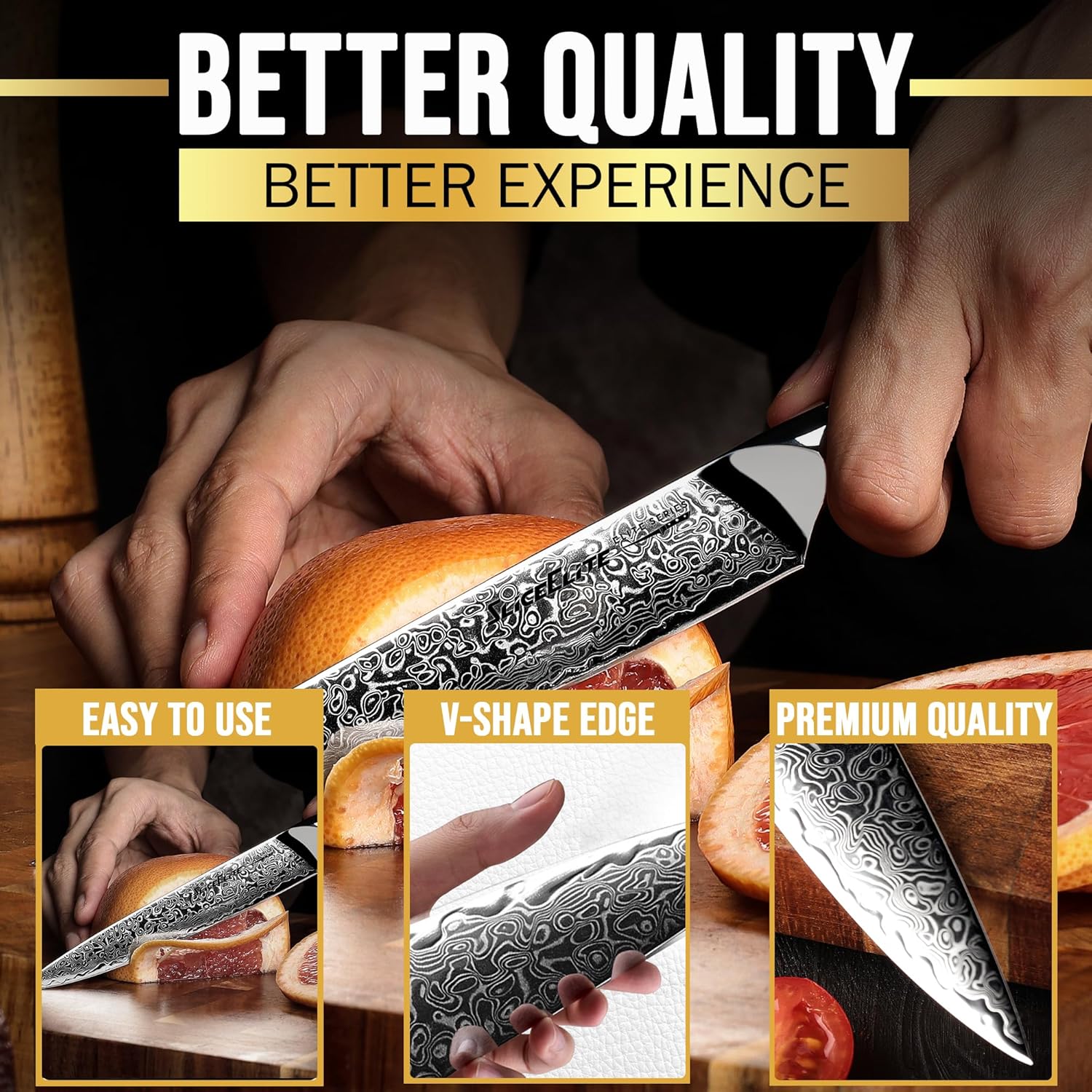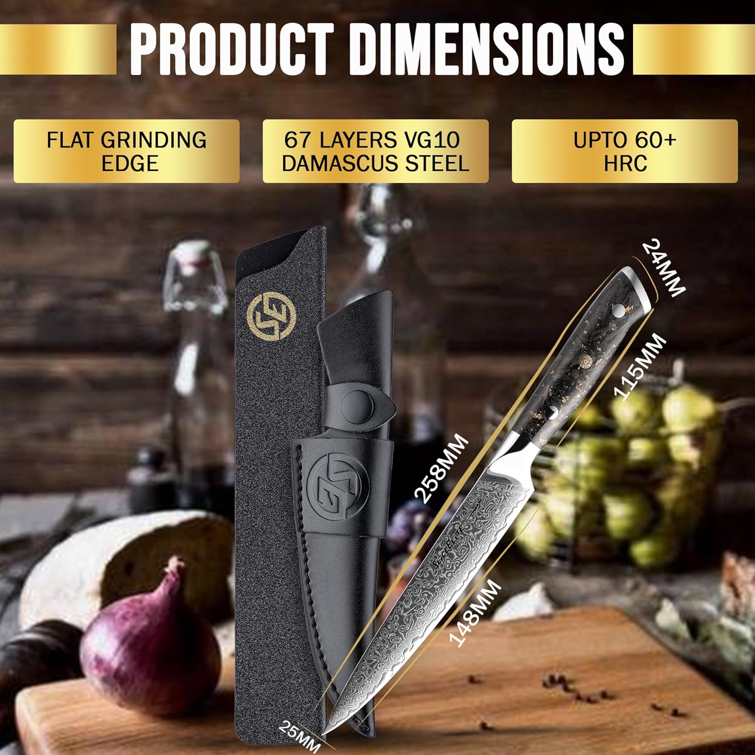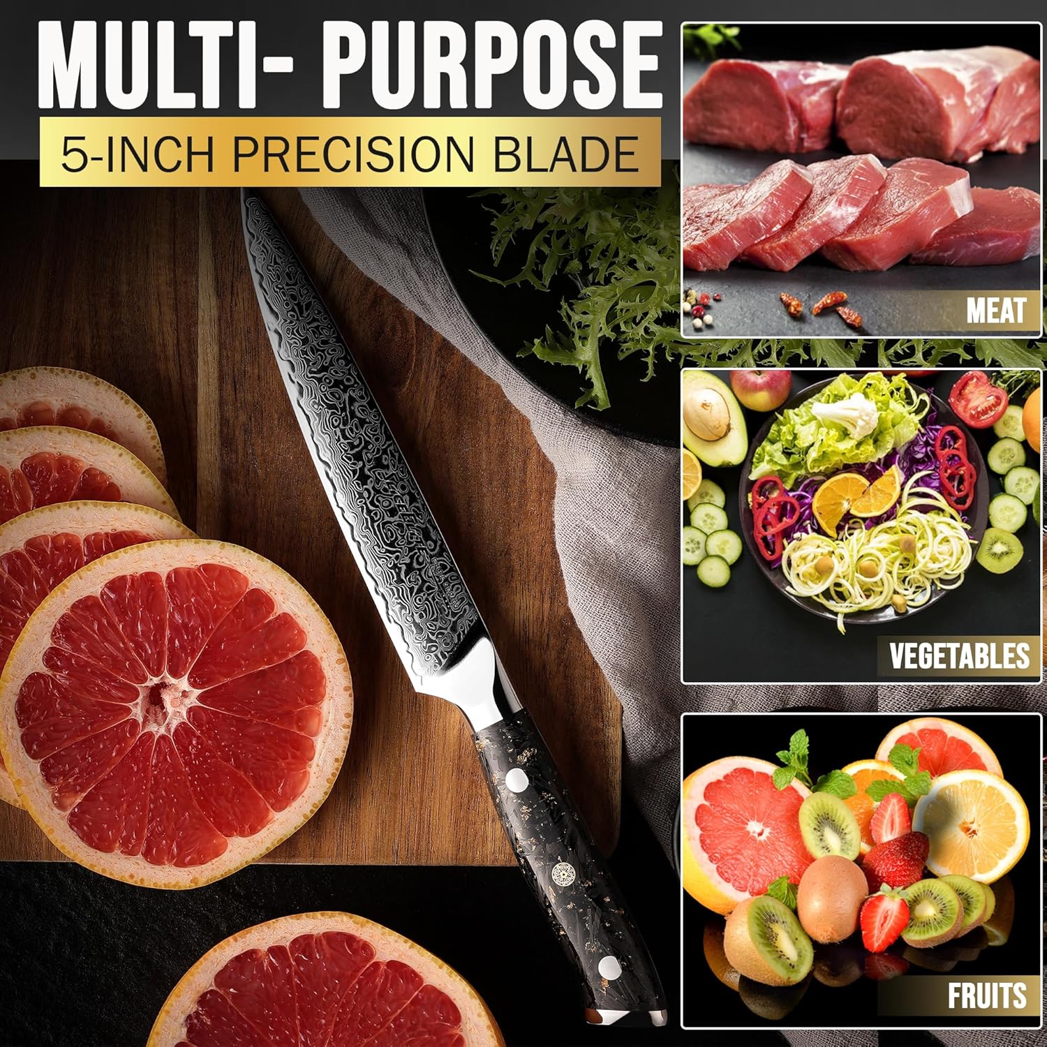 Elite Series 5-Inch Damascus Utility Knife – VG10 Steel Blade with Handles Option, Dual Sheaths, and Polishing Cloth (Utility Knife (Carbon Fiber Handle))