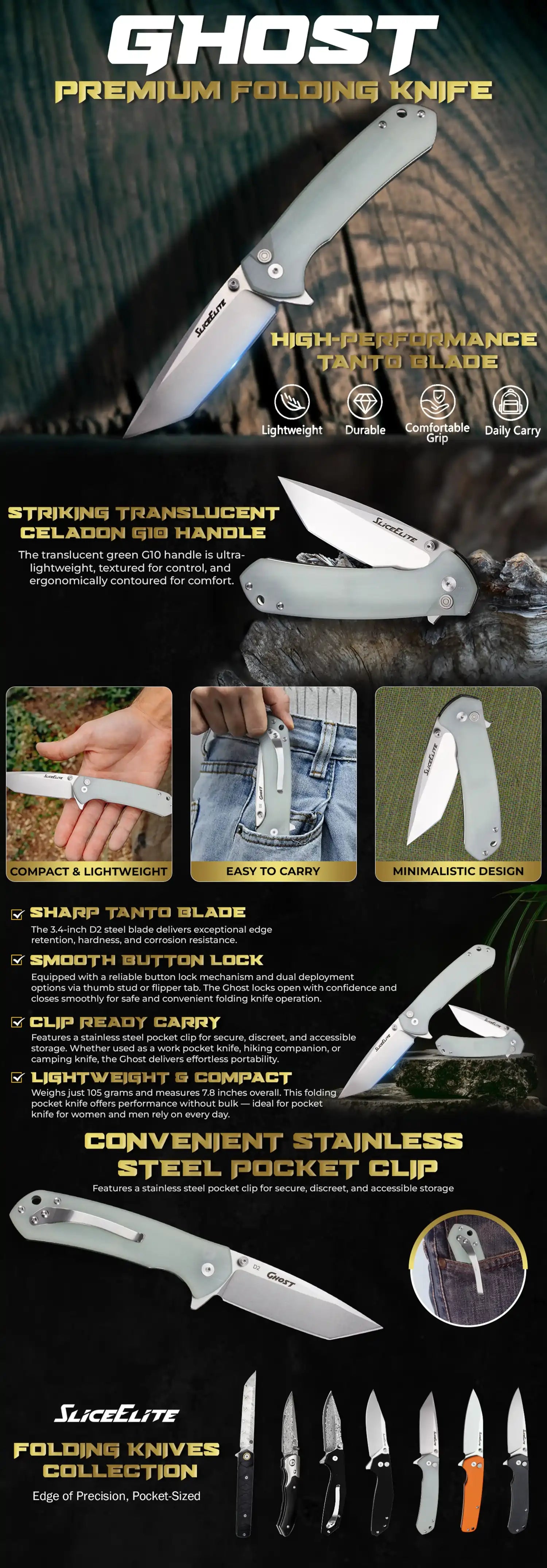 ๐๐จ๐ฆ๐ฉ๐๐๐ญ ๐๐ง๐ ๐๐ข๐ ๐ก๐ญ๐ฐ๐๐ข๐ ๐ก๐ญ: Weighing only 105 grams, the Ghost is designed for effortless everyday carry without sacrificing performance.