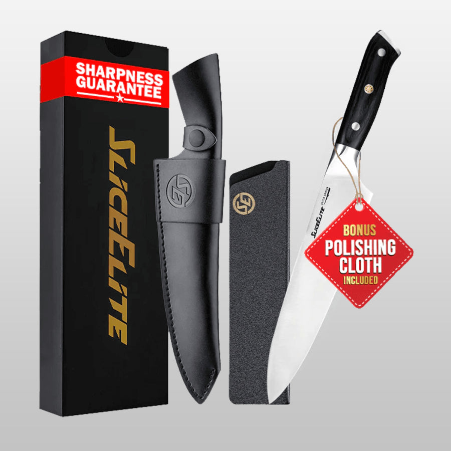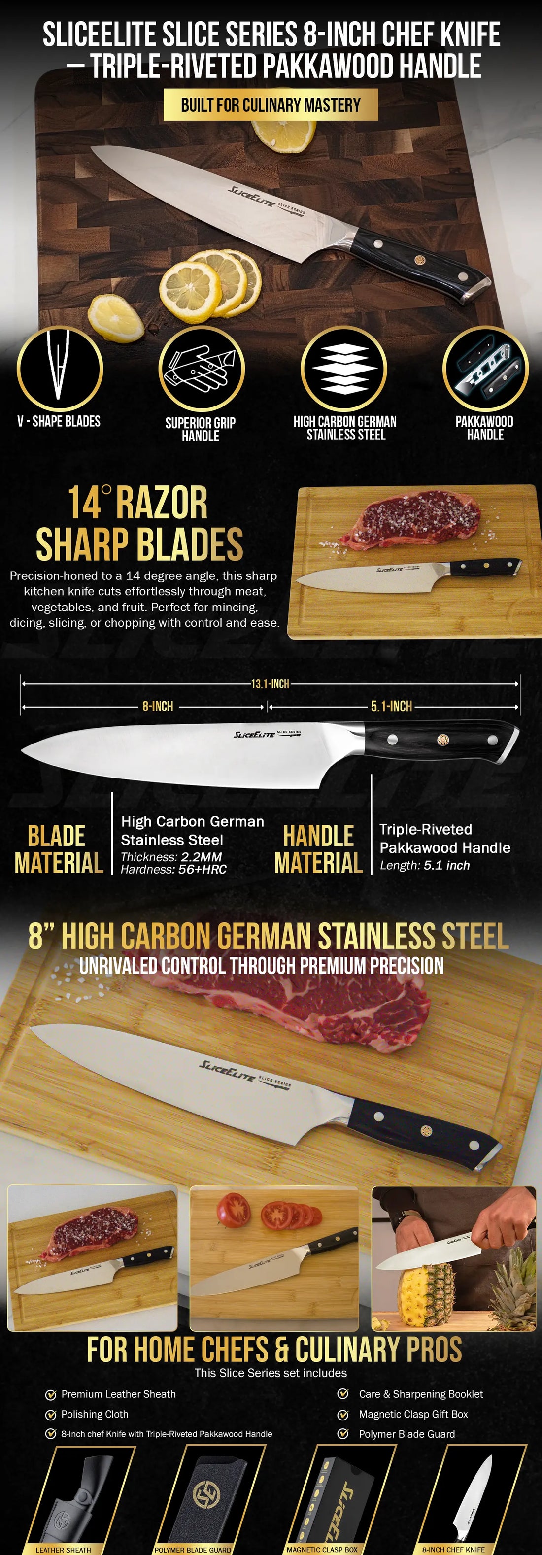 SliceElite 8-Inch Chef Knife German Steel Pakkawood Handle with Leather Sheath