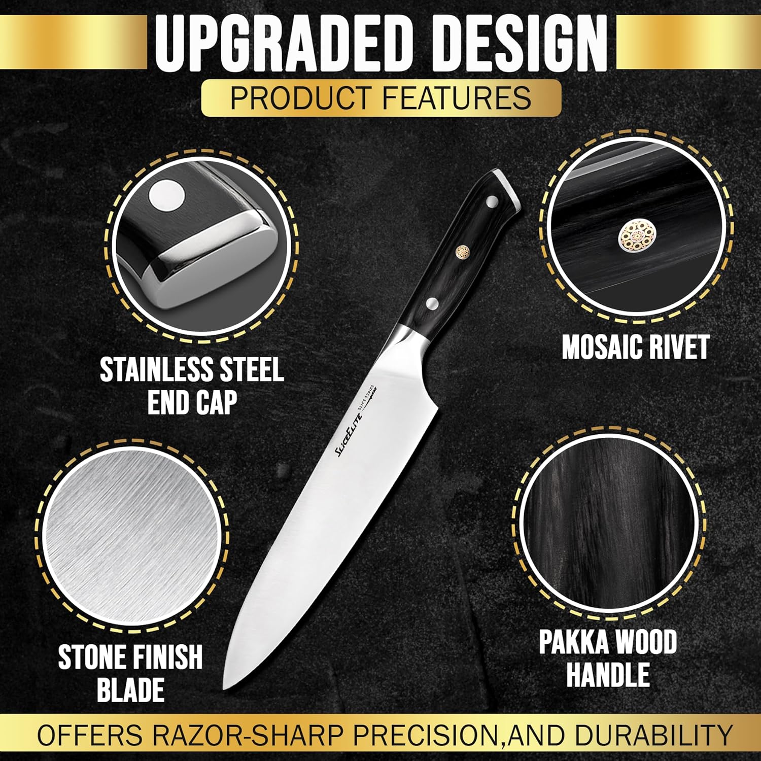 Slice Series 8-Inch Chef Knife – High Carbon German Steel Blade with Ergonomic Pakkawood Handle, Available with Durable Polymer or Premium Leather Sheath Options (Chef Knife)