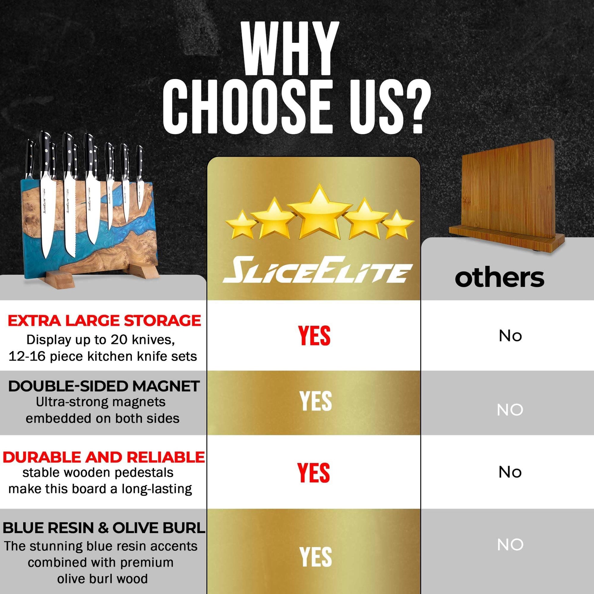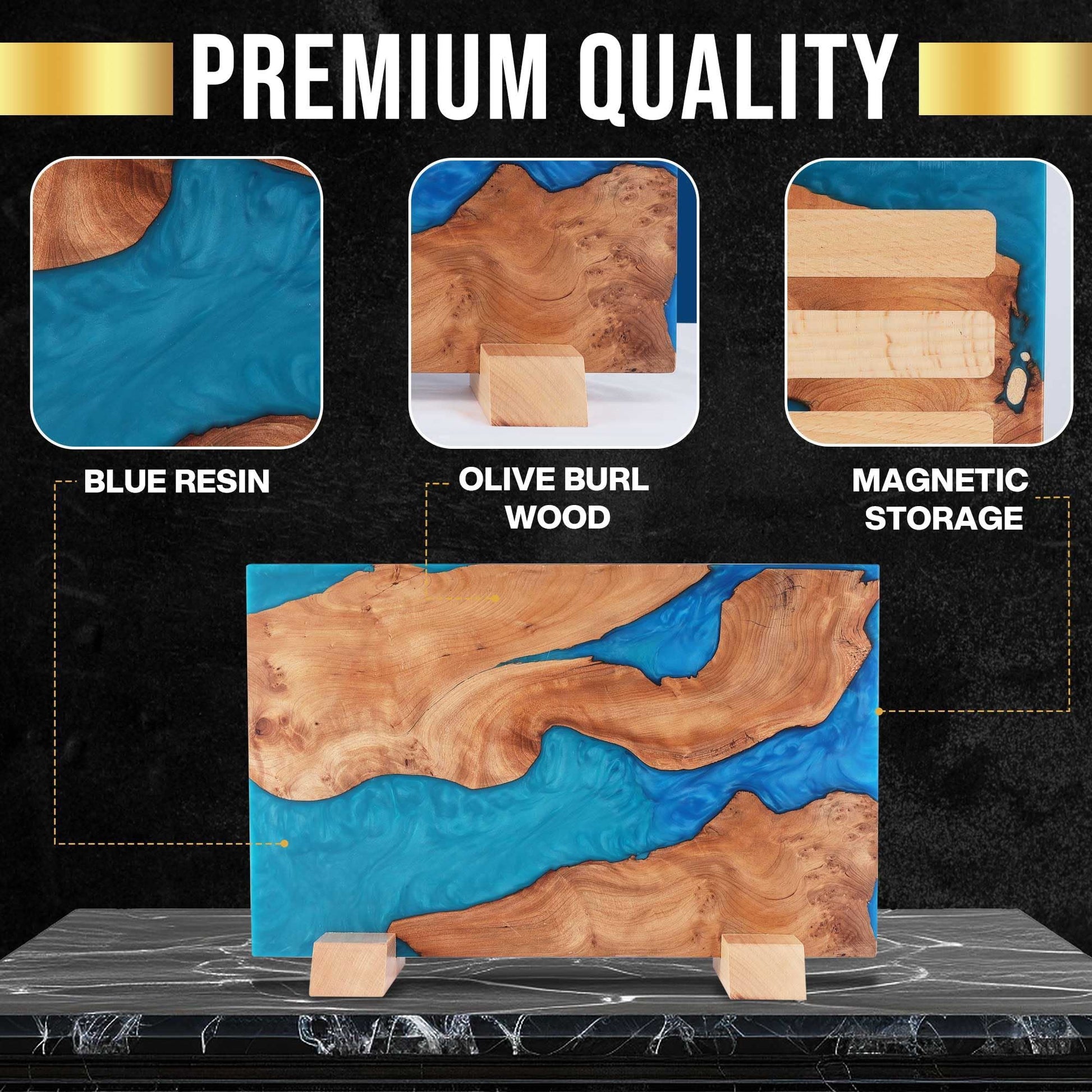 SliceElite Magnetic Knife Block – Artisan-Finished East Indian Walnut & Blue Resin | Dual-Sided Magnetic Storage Holds Up to 20 Knives