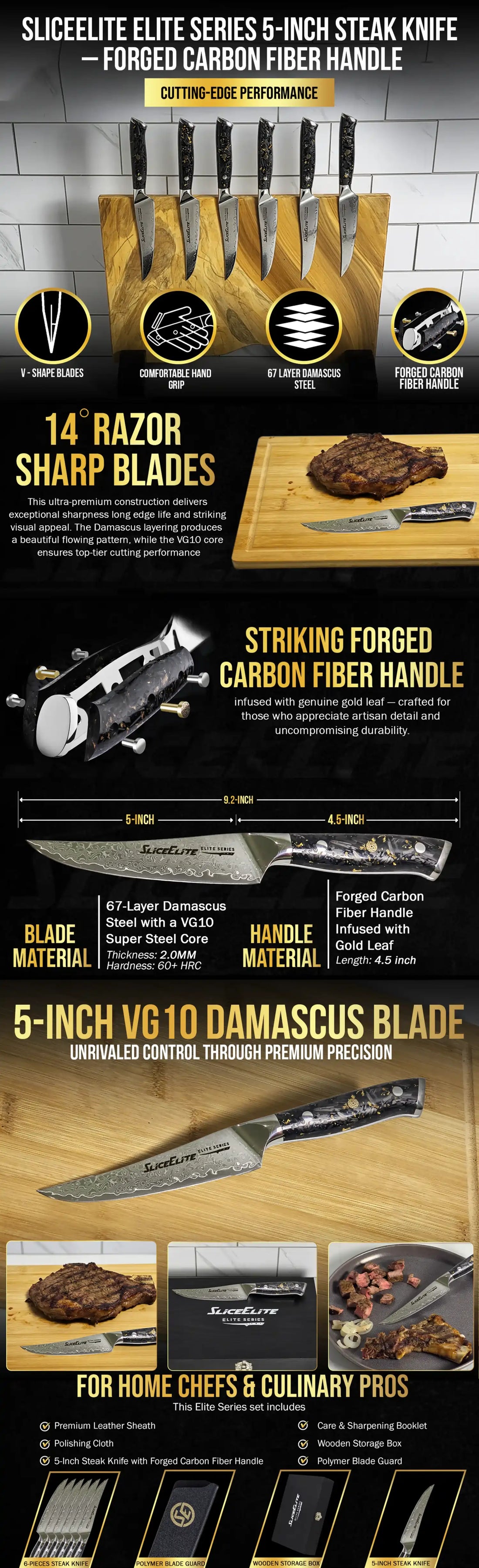 SliceElite Elite Series 6-Piece Damascus Steak Knife Set