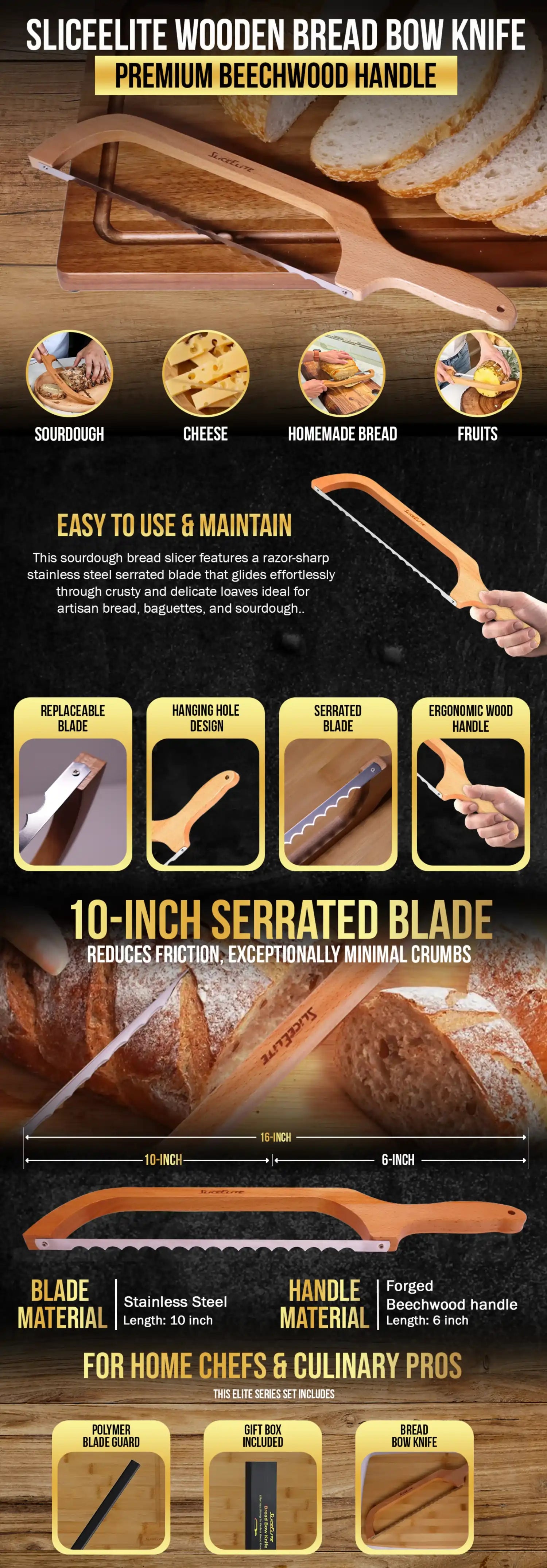 SliceElite Wooden Bread Bow Knife Serrated Bread Cutter